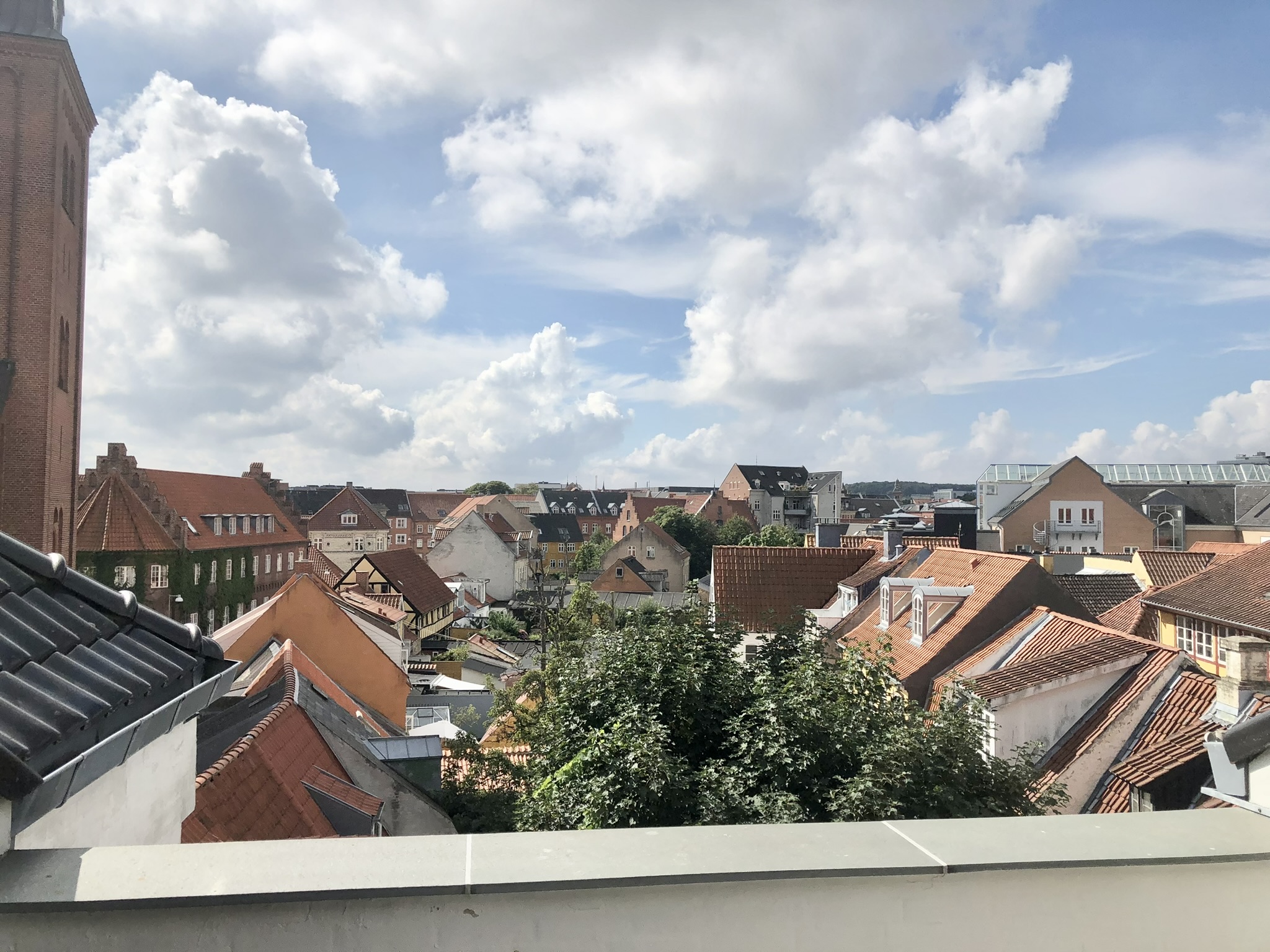 Øverst i ejendommen er etableret en eksklusiv liebhaverlejlighed, som byder på unikke arkitektoniske detaljer, stor sydvendt altan og udsigt over byens tage.