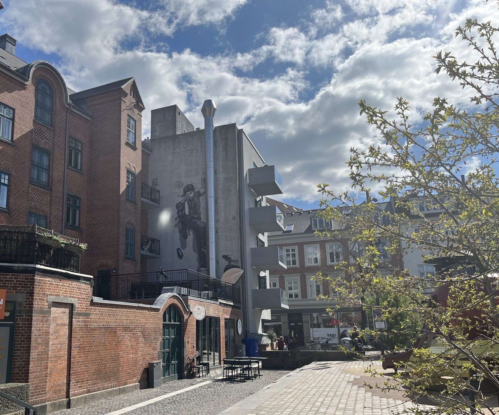 I stueplan ligger tre erhvervslejemål, der til sammen skaber et levende gadebillede, der i øvrigt byder på en velbesøgt legeplads kombineret med et grønt åndehul midt i Aalborg.