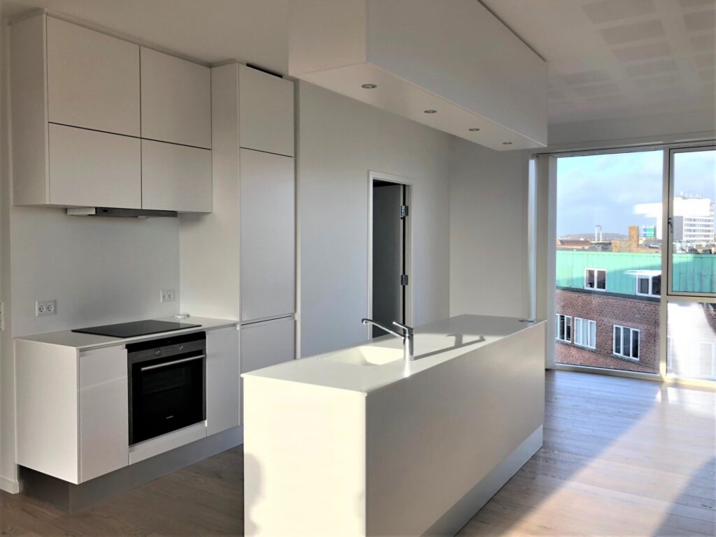 Lækker lejlighed beliggende centralt i Aalborg i nyere ejendom opført i 2014. Lejligheden indeholder fordelingsgang med adgang til dejligt badeværelse. Lækkert køkken og stue i ét med flot lysindfald og smuk udsigt. Fra stuen er der lige ligeledes udgang til dejlig altan. Dejligt soveværelse med god skabsvæg. I lejligheden er der kræset om materialerne, der er flotte klinker på badeværelset, flotte egetræs parketgulve i de øvrige rum og lækre elementer med corianbordplader. Der er gulvvarme i hele lejligheden.