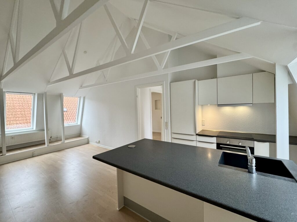 I hjertet af Aalborg ligger denne charmerende 2-værelses lejlighed med fritliggende bjælker.
