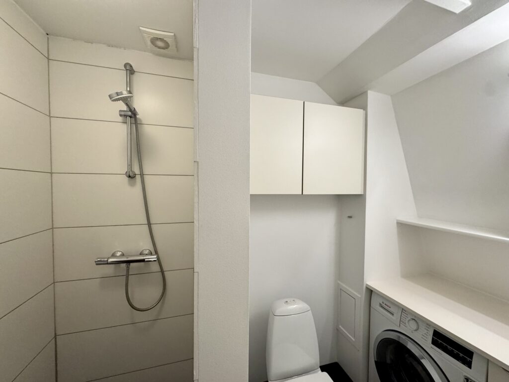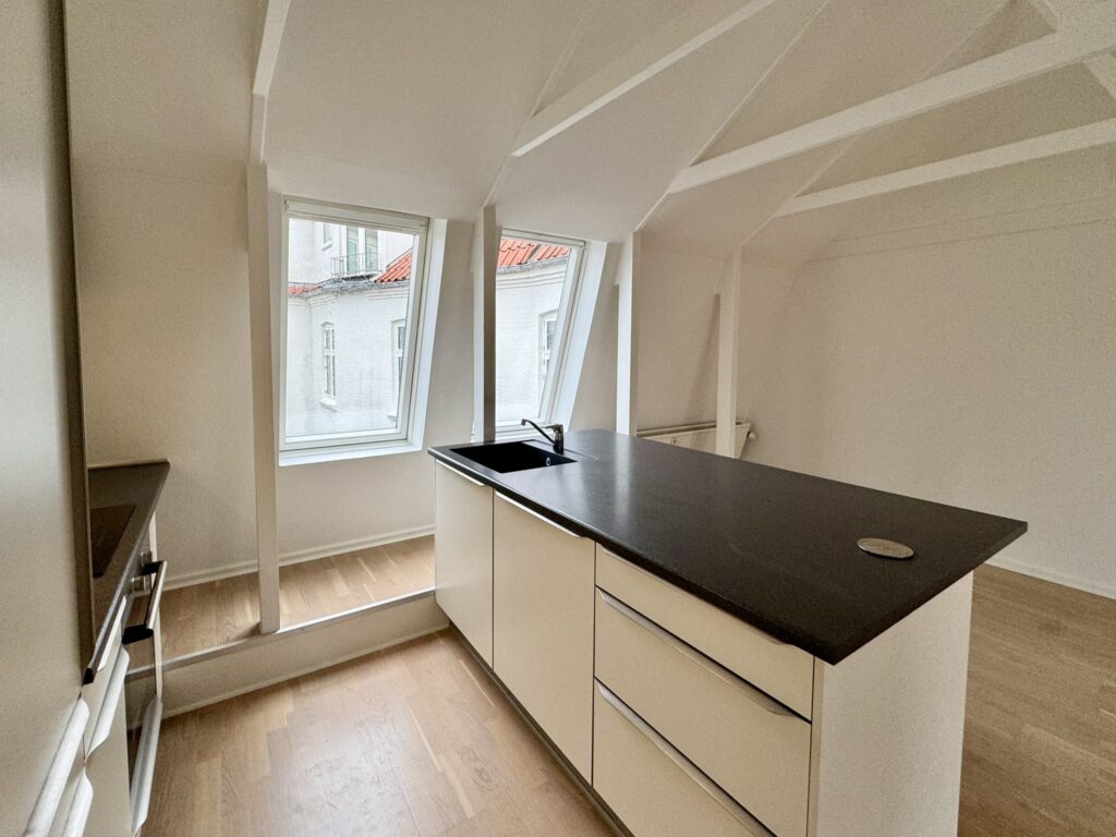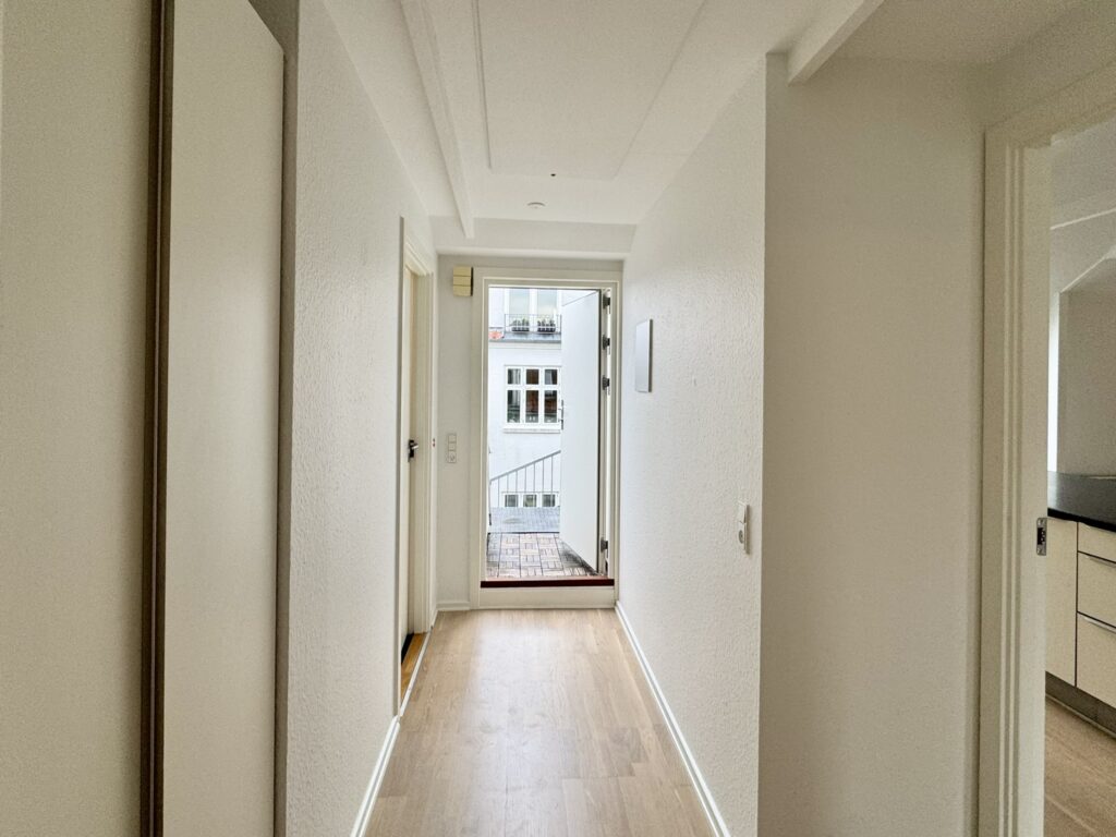 Lejligheden indeholder fin éntre, dejligt badeværelse med god bruseniche, fint soveværelse med skabe samt et lækkert og lyst køkken og stue i ét. Lejligheden blev totalrenoveret i 2015 med lækker interiør fra Invita. I ejendommen er der adgang til hyggelig fælles tagterrasse.