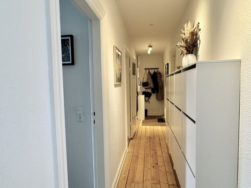 Lejligheden har fordelingsgang med adgang til badeværelse med bruseniche. Hvidt køkken med mulighed for lille spiseplads. 2 store lyse stuer en suite med dobbeltdør og stort soveværelse. Der er flotte trægulve i lejligheden samt smuk stuk.