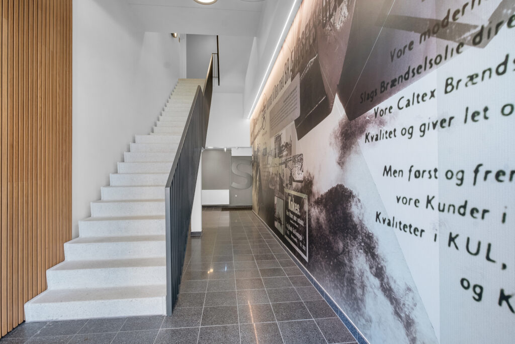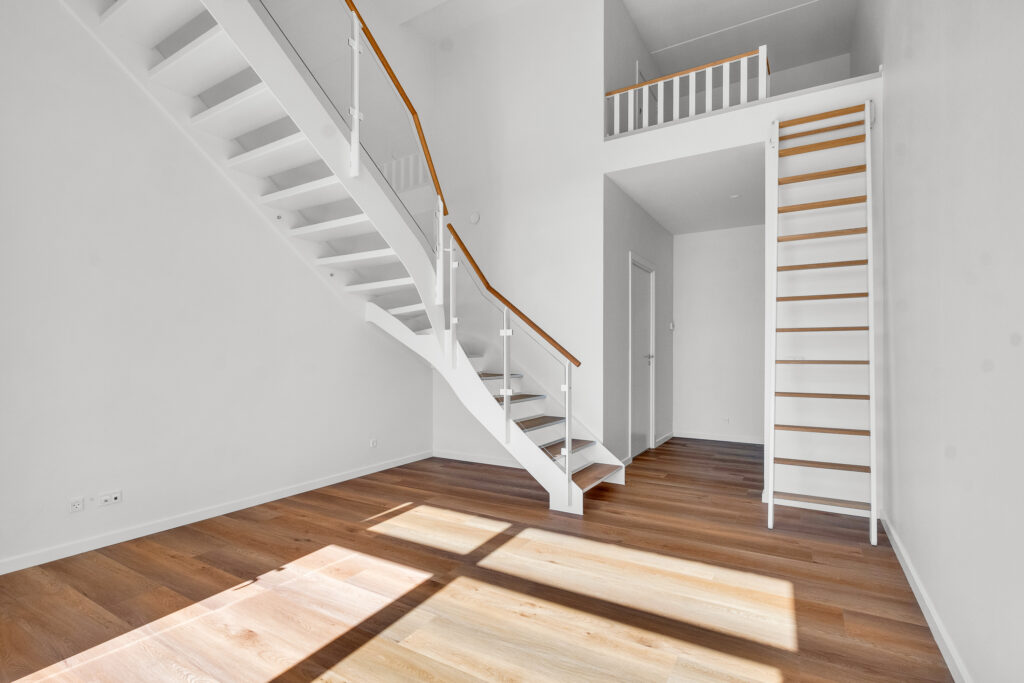Fra stueplan går man ind i en “1-værelses lejlighed” hvorfra man kan tage trappen op til 1. sals lejligheden.