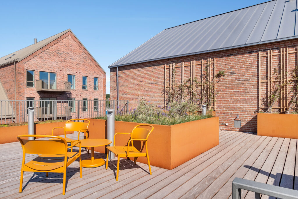 StigsborgHus byder på en lækker tagterrasse med panoramaudsigt over park, fjord og Aalborg. En skøn møbleret tagterrasse med orangeri samt et skønt gårdmiljø.