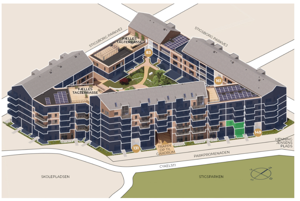 Velkommen til et luksuriøst boligområde på Stigsborg – hvor moderne design møder naturens ro.