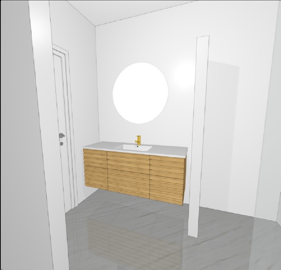 Køkken og bad er med stilfuldt inventar fra Invita, der har den helt perfekte kombination af det klassiske design og et moderne tvist. Badeværelset bliver hvidt med egetræs lameller og køkkenet bliver støvet grønt med messing greb.
