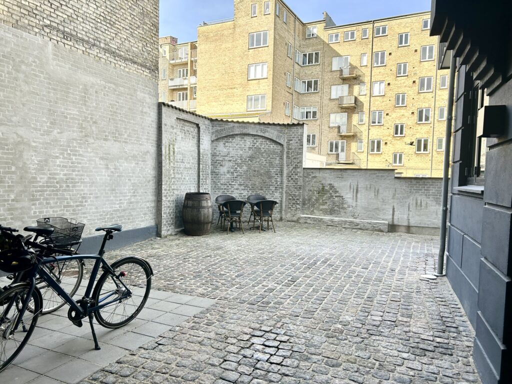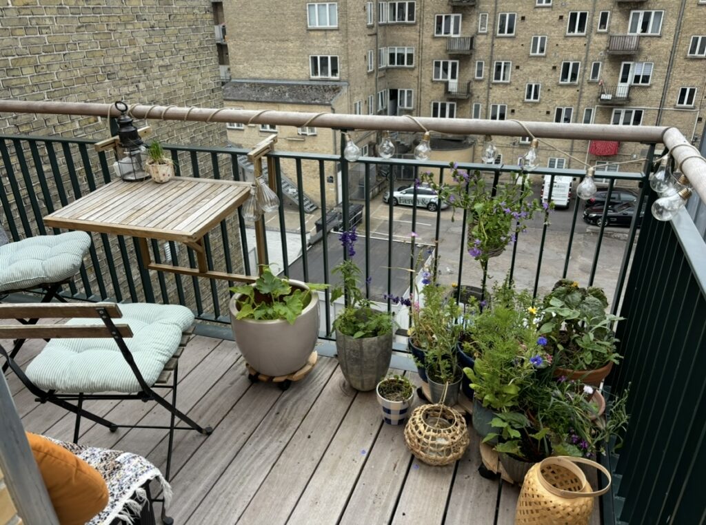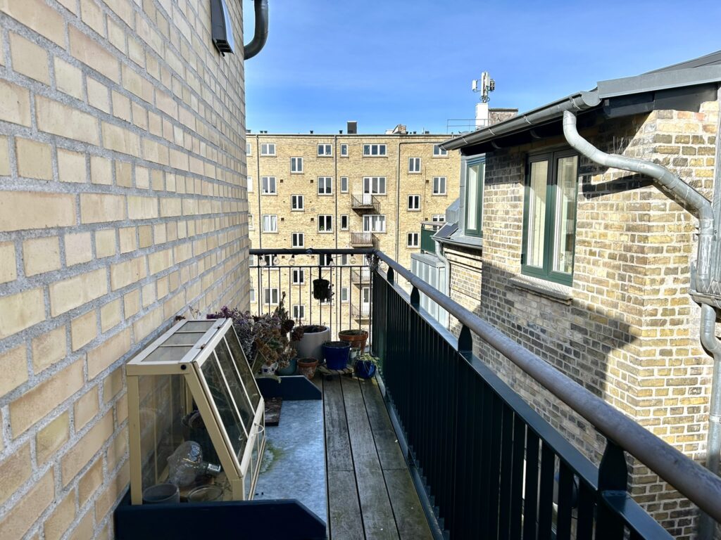 Den lækre altan vender mod vest ud mod det fælles gårdmiljø.