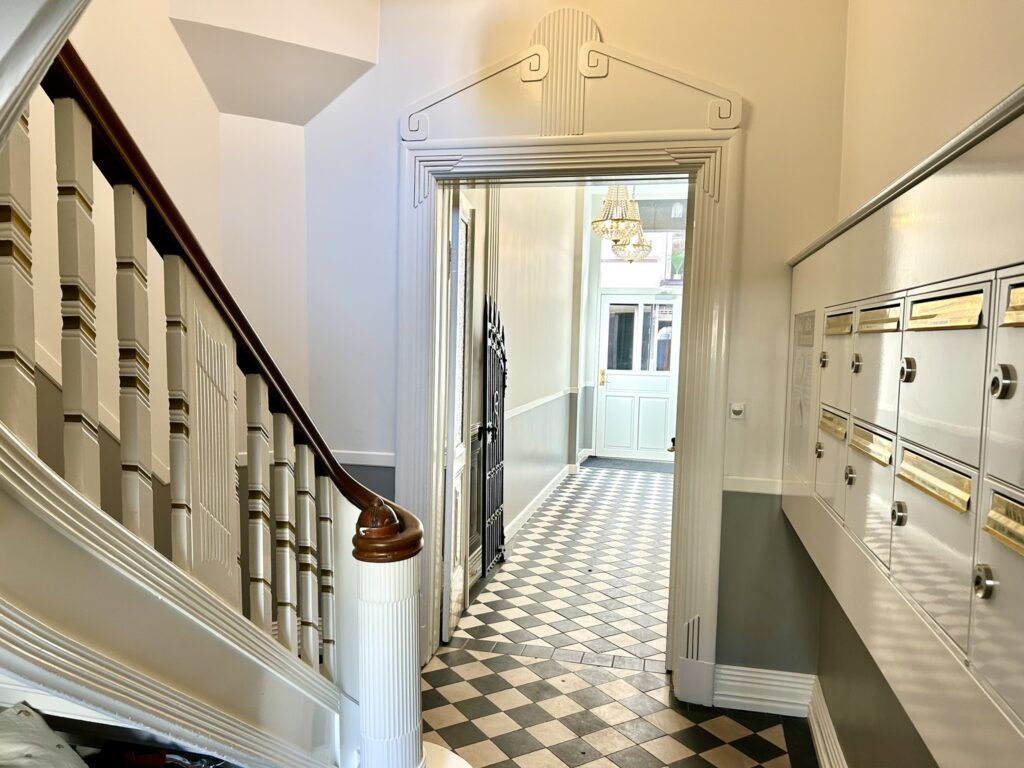 Ejendommen har en skøn beliggenhed, lys og smuk opgang, cykelparkering i gården og i kælderen samt kælderrum til opbevaring.