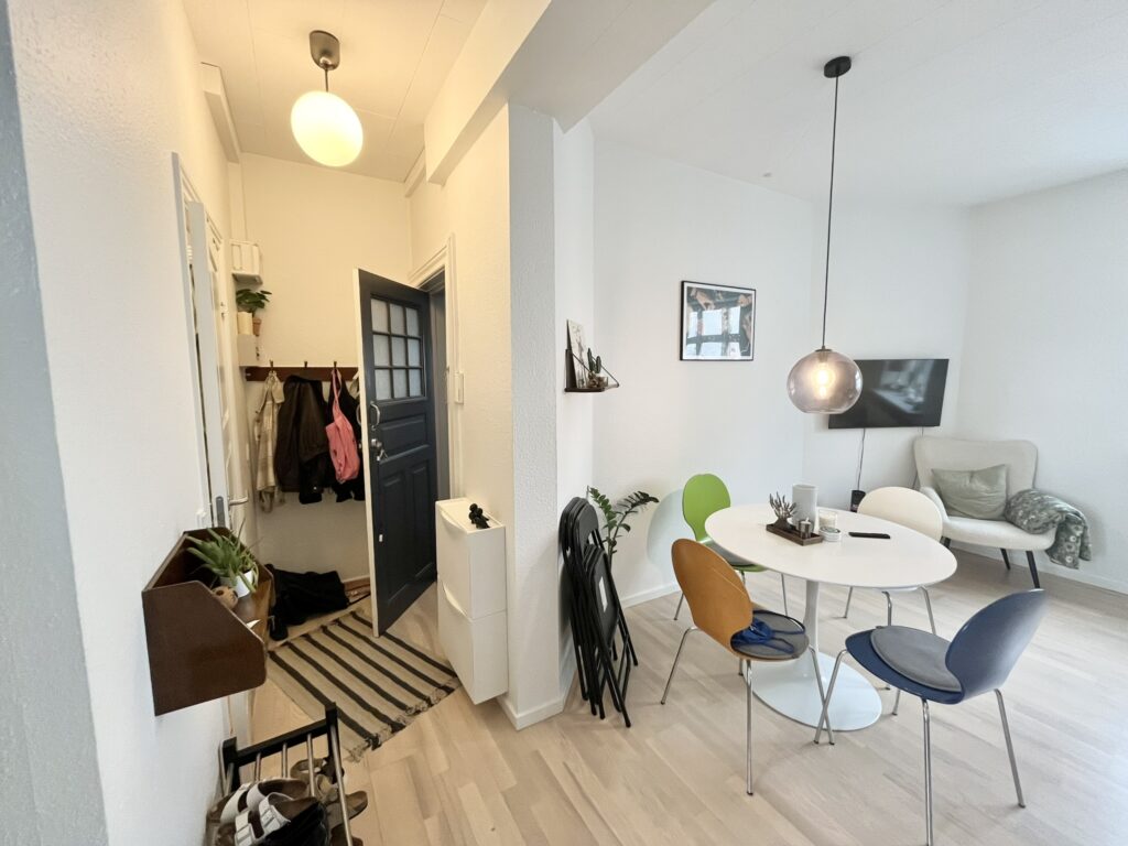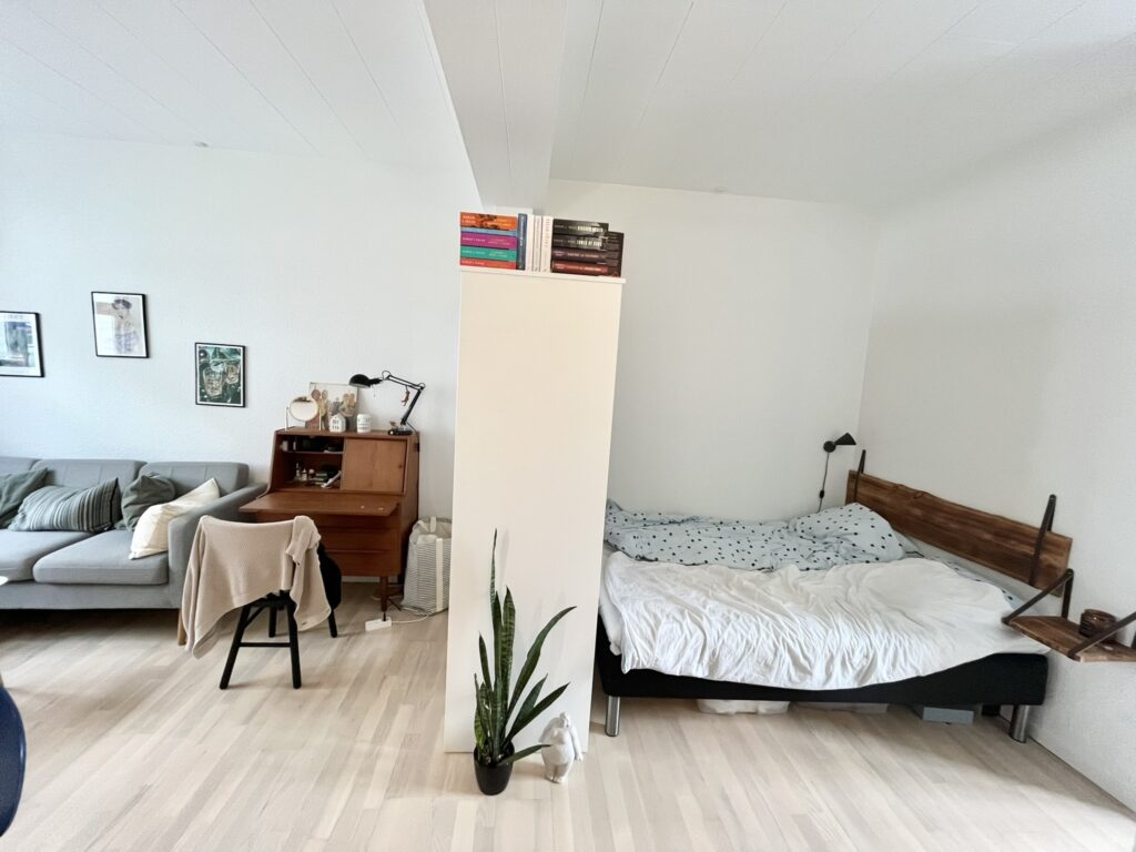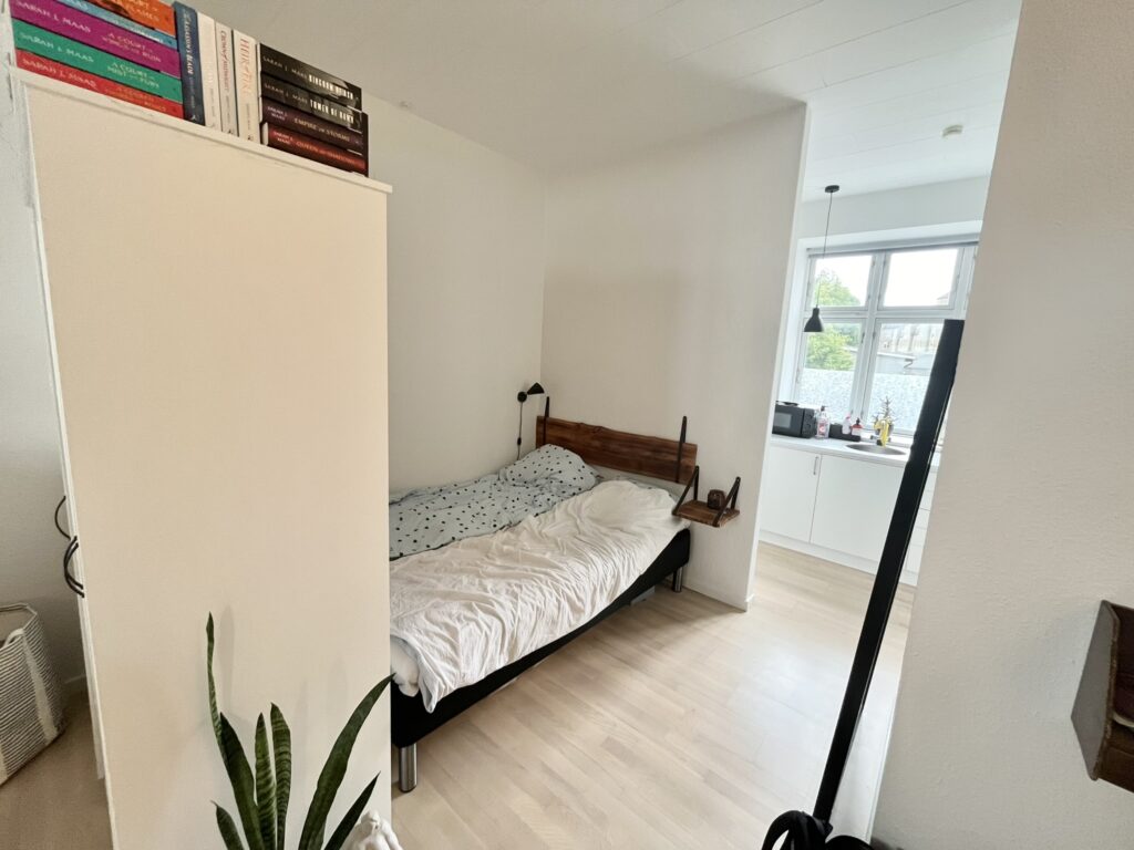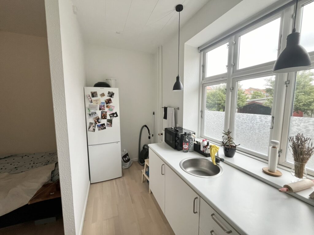 Lejligheden er en hyggelig 1-værelses lejlighed. Den er indrettet med en mindre entré, en stor stue med fin plads til både opholdsstue samt sengeafdeling, køkken med mulighed for mindre spiseplads og fint badeværelse.