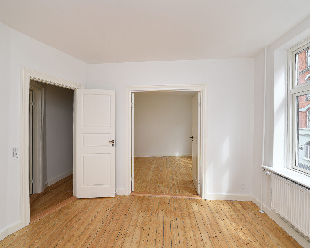 Det er muligt at lukke døren imellem stuerne, så lejligheden evt. kan bruges som en delelejlighed.
