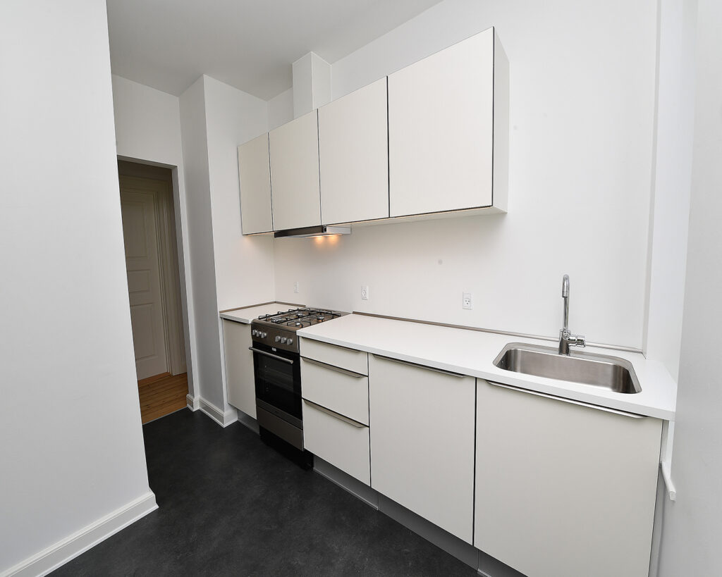 Rigtig lækker 3-vær. lejlighed, der blev gennemgribende renoveret i 2019. Lejligheden ligger i en hyggelig ejendom med adgang til fælles gårdhave. Lejligheden består af flot lyst køkken, badeværelse, 2 stuer en suite samt stort soveværelse. Inventaret i køkkenet og badeværelset er fra Invita – hvide låger og med hvid bordplade og alt i hårde hvidevarer.