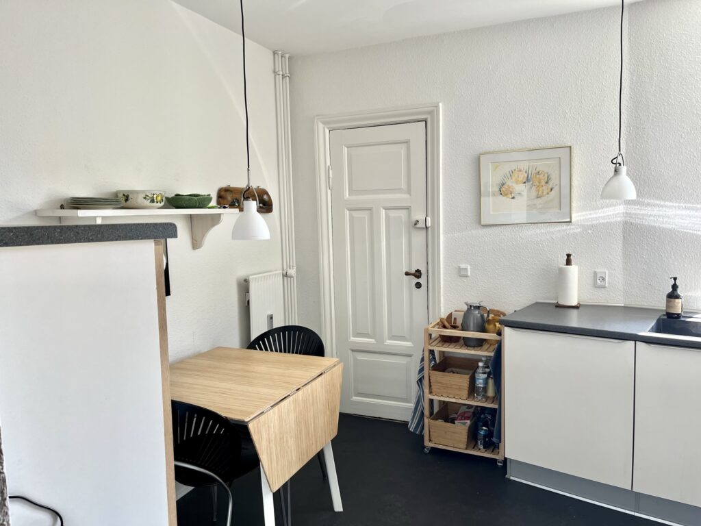En virkelig flot lejlighed i den helt rigtige stil. Det lækre køkken er med alt i hårde hvidevarer.