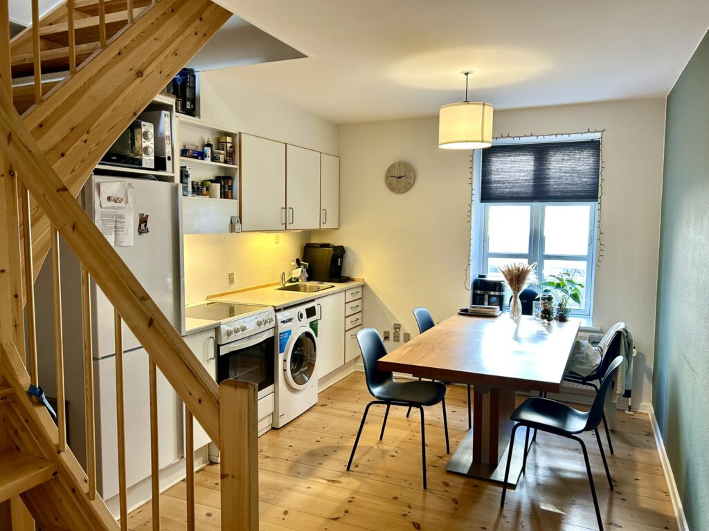 Midt i Aalborg ligger denne fine lejlighed i 2 plan. Mere central beliggenhed fås ikke – her bor man nemlig lige i gågaden med de mange specialbutikker og hyggelige caféer som nærmeste naboer.