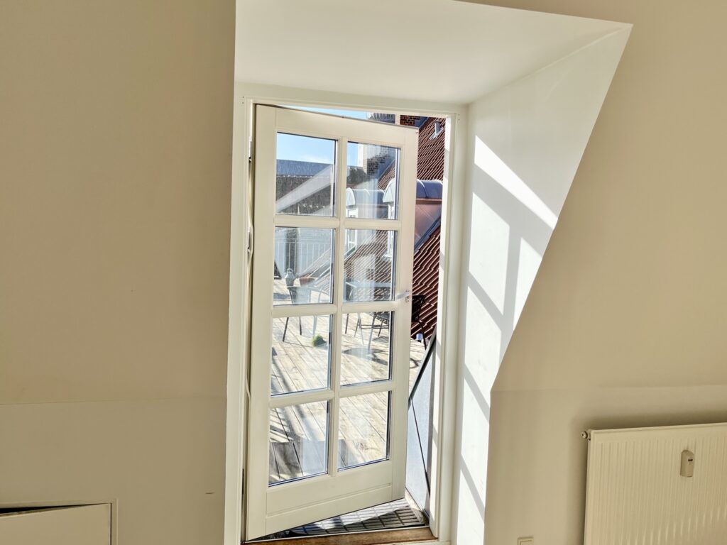 Fra stuen er der adgang til dejlig fælles tagterrasse, som deles med 2 øvrige lejligheder.