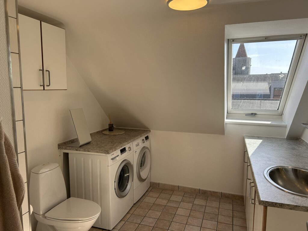 I hjertet af Aalborg ligger denne charmerende taglejlighed indeholdende god entré/fordelingsgang med skabe, stort og hyggeligt køkken-alrum med alt i hvidevarer samt synlige bjælker og ovenlys. Fint soveværelse med skabe og udgang til dejlig altan med skøn udsigt til C. W. Obels Plads. Dejligt stort badeværelse med god skabsplads og vinduer.