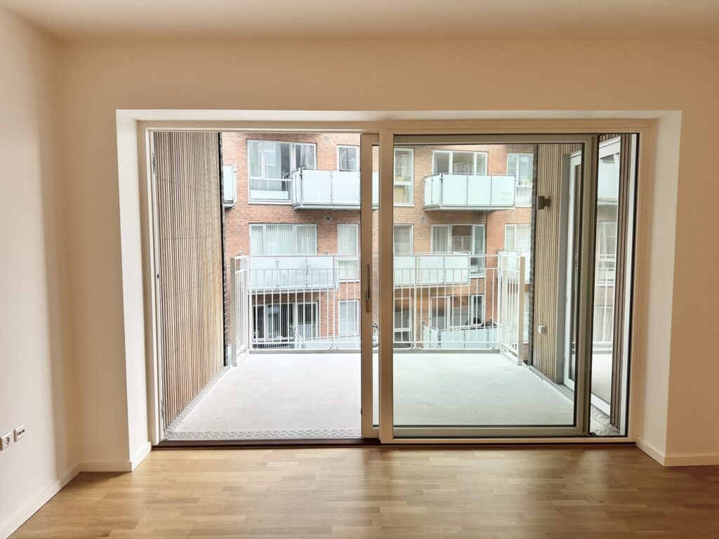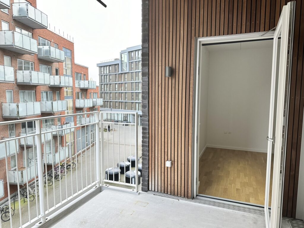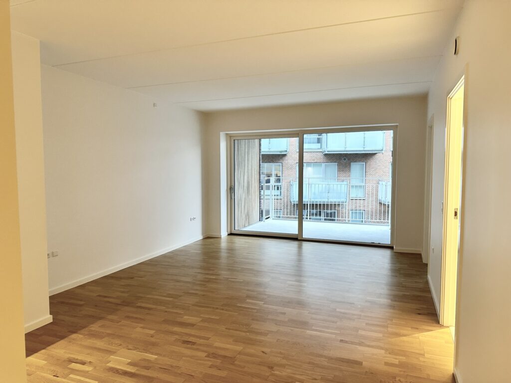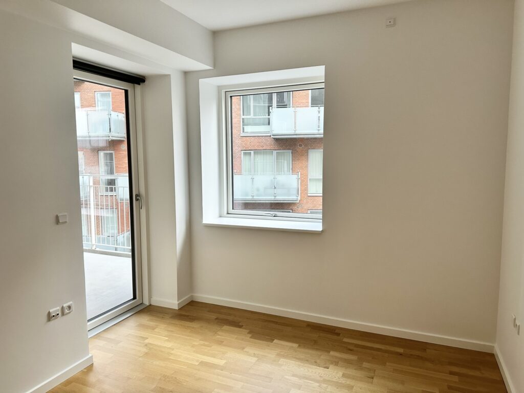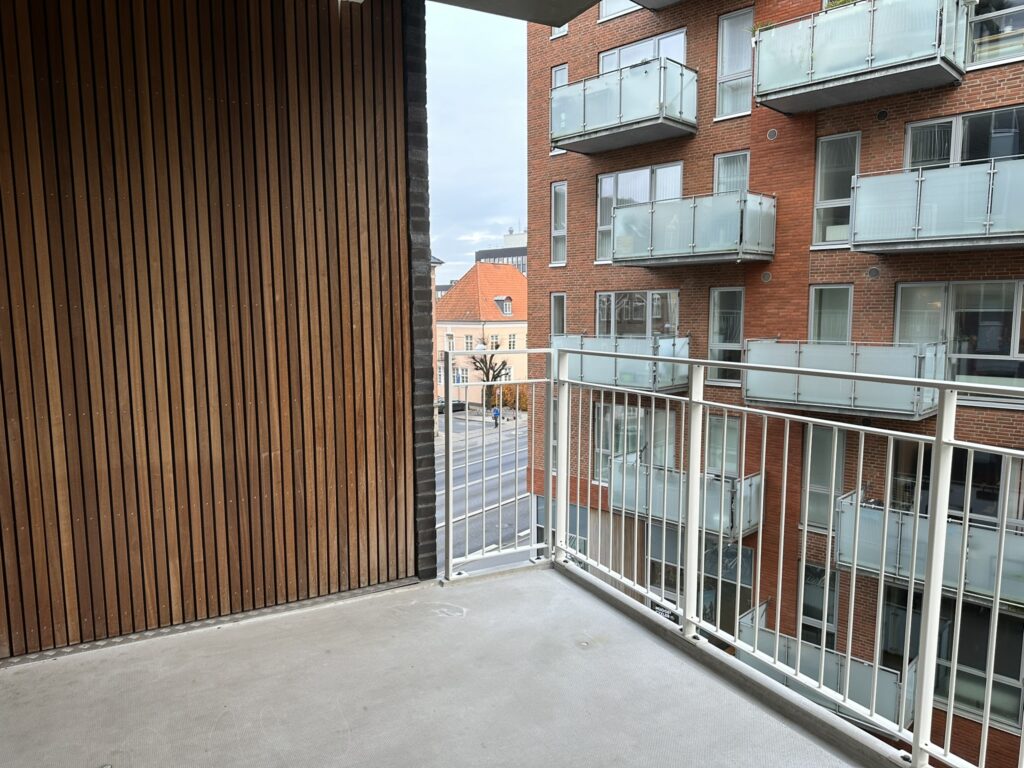 Spændende 3-vær. lejlighed i flot nyere byggeri på det attraktivt beliggende Godsbaneareal. Lejligheden indeholder lækkert køkken og stue i ét. Dejligt stort badeværelse med flotte klinker i travertin look. Soveværelse samt fint værelse – begge med indbyggede skabe. Interiøret i alle rum er fra Invita. Flotte egetræsparketgulve i hele lejligheden. Fra soveværelse og stue er der adgang til dejlig stor altan. En lejlighed, hvor der er kræset for deltaljerne.