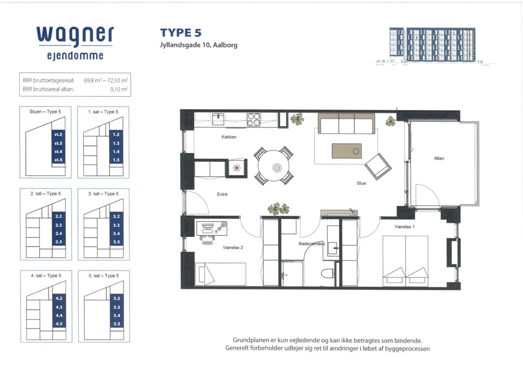 Der er elevator i ejendommen og stor fælles tagterrasse med smuk udsigt over Aalborg.