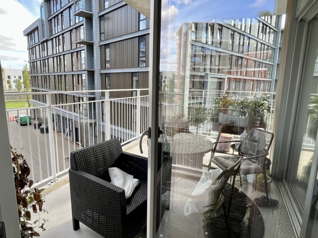 Lejligheden her på 3. sal ligger på hjørnet af ejendommen, hvor også lejlighedens dejligt store altan ligger. Dermed har den både kig mod øst og ud mod den åbne plads mod syd.