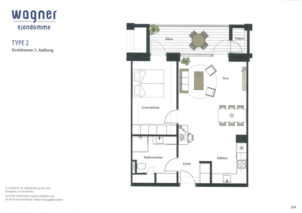 Lejligheden indeholder entre med faste skabe, dejligt køkken med alt i hårde hvidevarer og i åben forbindelse til stue, hvorfra der er udgang til lækker altan med depotrum. Soveværelset har ligeledes udgang til altanen og har mange faste skabe. Dejligt lyst badeværelse med bruseniche, kombi vaskemaskine/tørretumbler og godt skabsarrangement.
