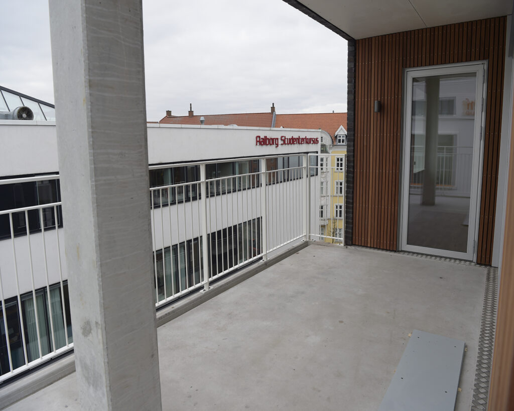 Spændende 3-vær. lejlighed på det attraktive Godsbaneareal. Lejligheden indeholder lækkert køkken og stue i ét. Dejligt stort badeværelse med flotte klinker i travertin look. Soveværelse samt fint værelse – begge med indbyggede skabe. Interiøret i alle rum er fra Invita. Flotte egetræs parketgulve i hele lejligheden. Fra soveværelse og stue er der adgang til dejlig stor altan. En lejlighed, hvor der er kræset for deltaljerne. Selve ejendommen rummer en smuk overdækket atriumgård, hvor ejendommens beboerne kan mødes, og i kælderen, der er i to niveauer, er der mulighed for leje af p-plads. Tilkørsel hertil sker via en smart bilelevator. Der er ligeledes brugsret til en flot fælles tagterrasse med smuk udsigt over Aalborg og omegn.