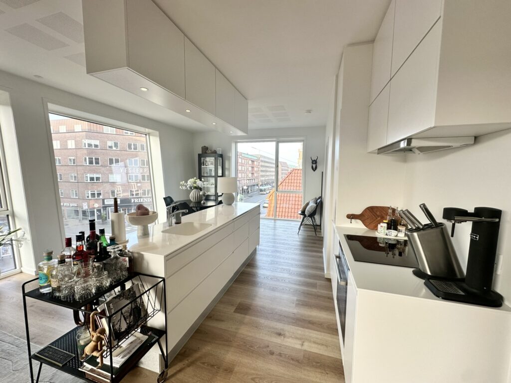 Lejligheden indeholder fordelingsgang med adgang til dejligt badeværelse. Lækkert køkken og stue i ét med flot lysindfald og smukt view over Vesterbro. Dejligt soveværelse med god skabsvæg. I lejligheden er der kræset om materialerne, der er flotte klinker på badeværelset, flotte egetræs parketgulve i de øvrige rum og lækre elementer med corianbordplader. Der er gulvvarme i hele lejligheden.