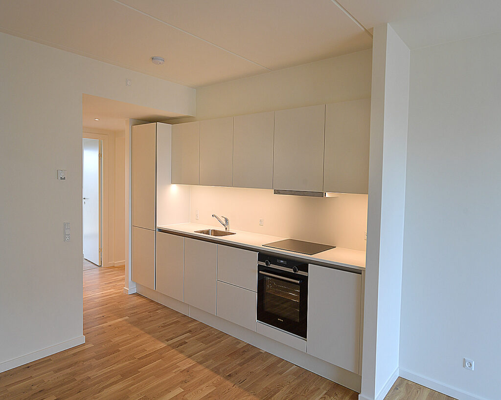 Lejligheden er med alt i hvidevarer, gulvvarme og flotte egetræsparketgulve.