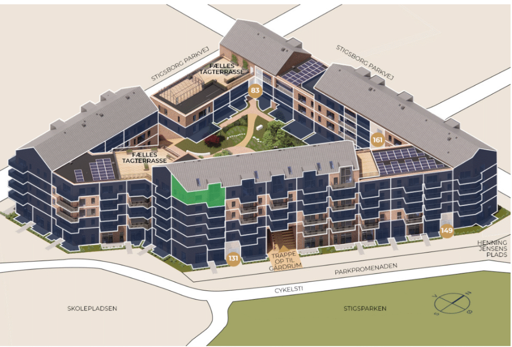 Velkommen til et luksuriøst boligområde på Stigsborg – hvor moderne design møder naturens ro.