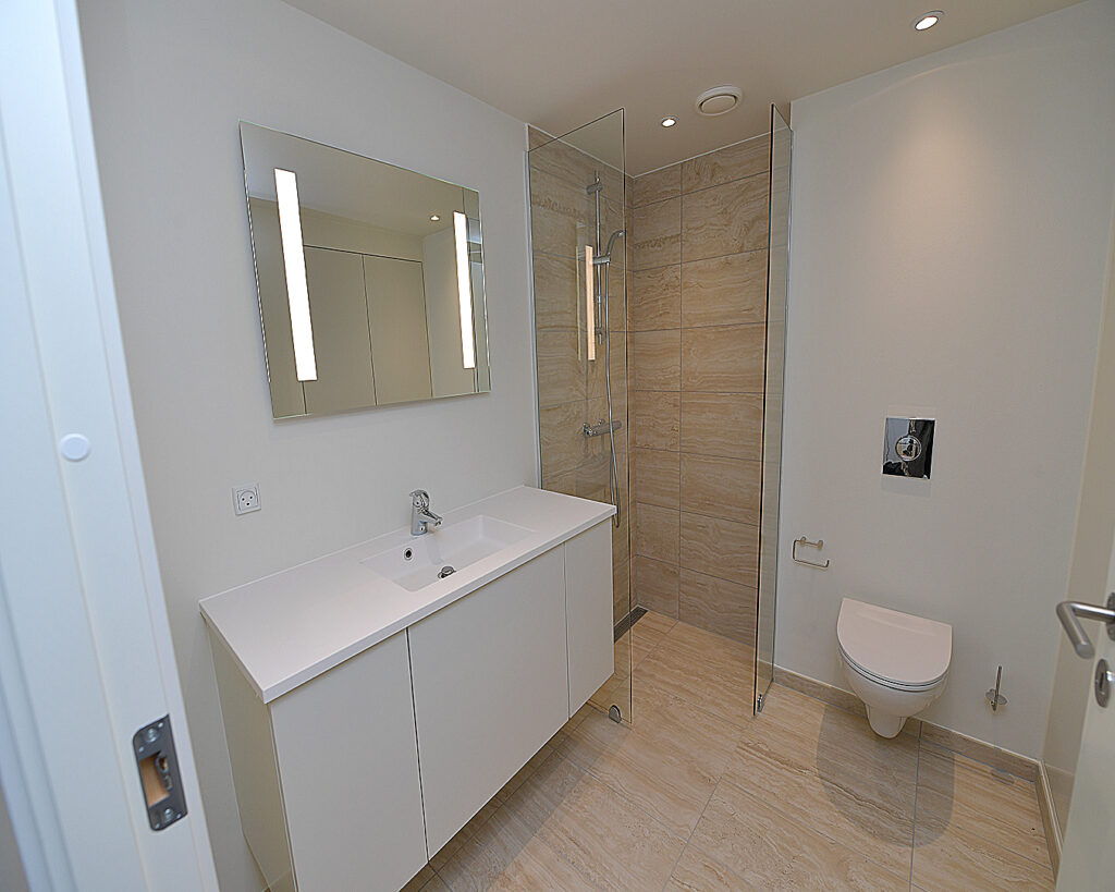Lejligheden er moderne, lys og lækker med alt i gode materialer, gulvvarme i hele lejligheden og alt i hårde hvidevarer.