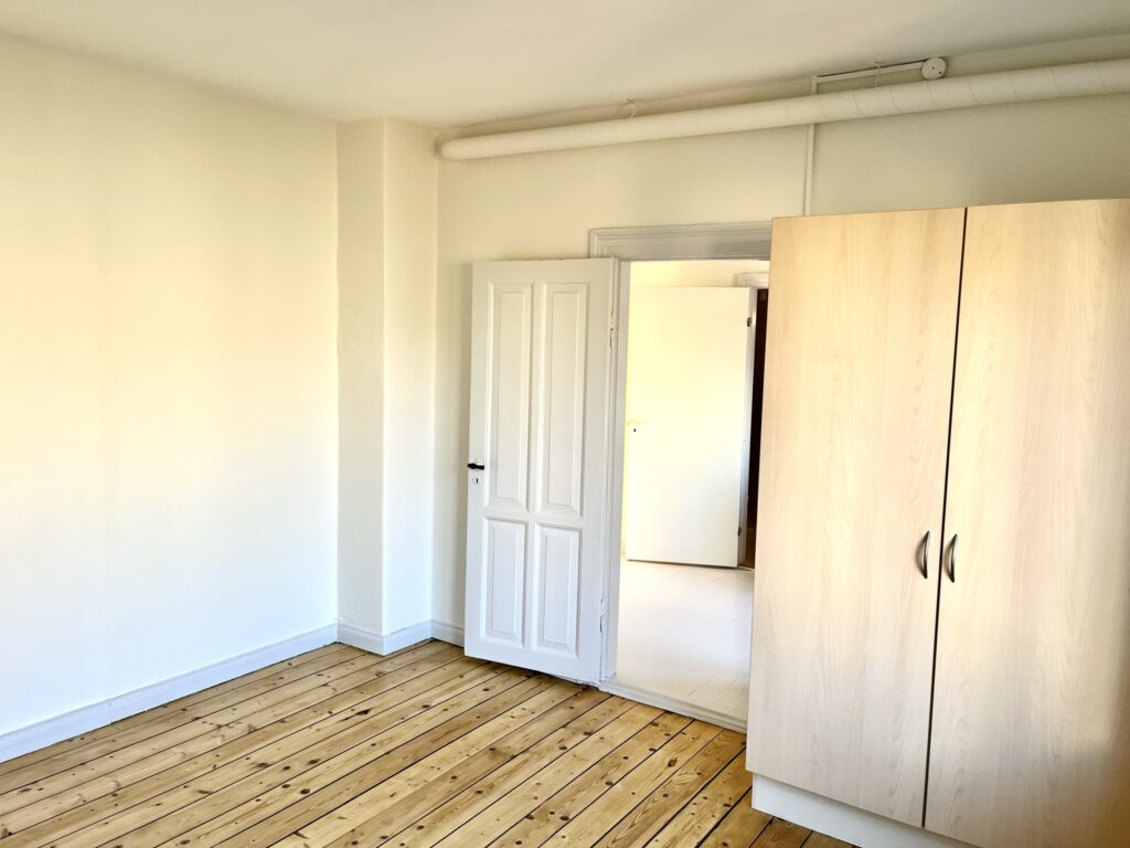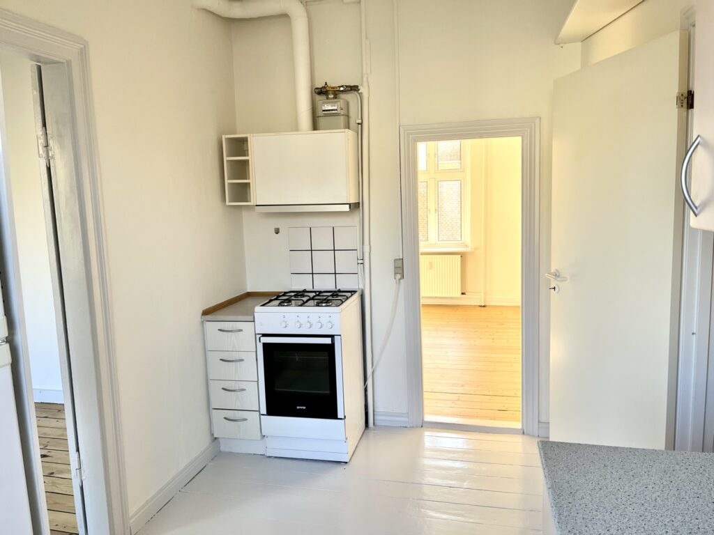 Lejligheden indeholder entré, 2 stuer én suite (der er ikke døre mellem stuerne), rummeligt køkken, stort lyst soveværelse samt et stort badeværelse.