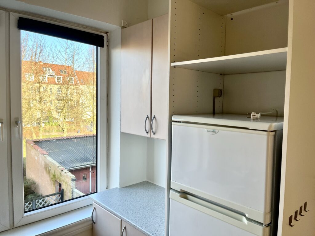 Denne fine lejlighed ligger i en rolig ejendom med tilhørende gårdmiljø, hvor der er mulighed for blive skrevet på venteliste til leje af parkeringsplads og garage i gården.