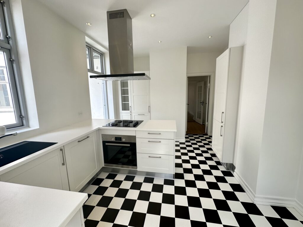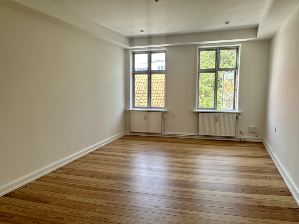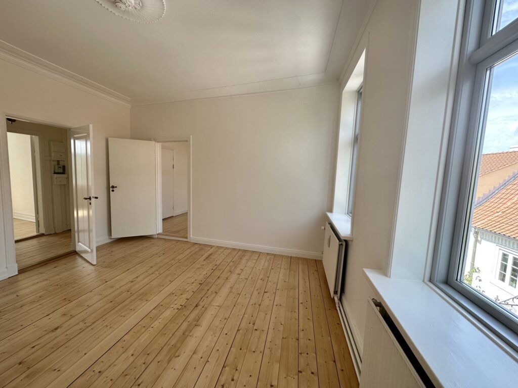 Lejligheden indeholder en god fordelingsentré, 2 værelser, et stort lyst soveværelse og to smukke stuer én suite, hvoraf den ene har et smukt sildeparketgulv samt direkte udgang til lejlighedens altan. Fra den ene stue kommer man via en mellemgang ind i et dejligt lyst køkken med god skabs- og bordplads. Køkkenet er ligeledes med udgang til altanen. Fra mellemgangen er der adgang til lejlighedens skønne badeværelse, der er lyst og moderne med bruseniche og vindue.