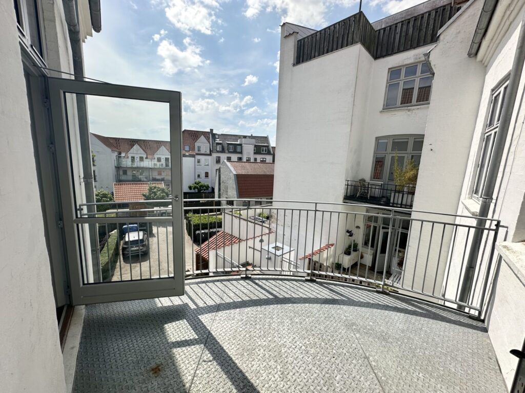 Lejlighedens dejlige altan, der er syd/vest vendt, ligger ned mod den hyggelige gårdside af Nørregade.