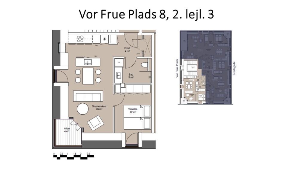 I gågaden i Aalborg ligger den smukke og nyrenoverede ejendom Bredegade 4/Vor Frue Plads 8. Her er 1. og 2. sal blevet indrettet med 7 helt nye og smukke lejligheder. Lejlighederne er netop nu ved at blive færdiggjort.