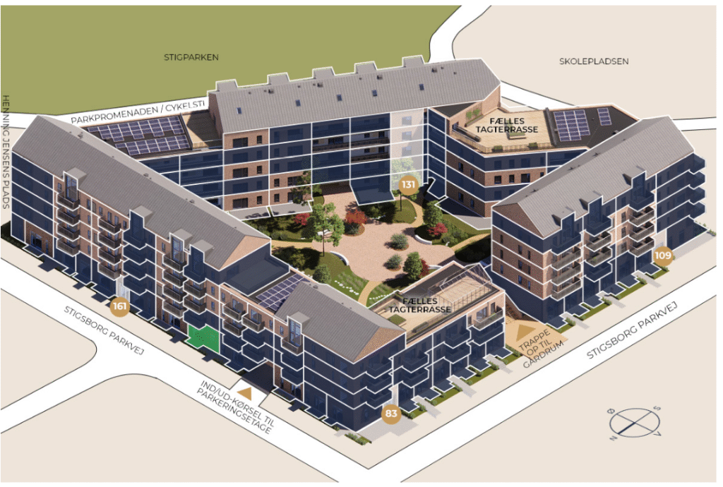 Velkommen til et luksuriøst boligområde på Stigsborg – hvor moderne design møder naturens ro.