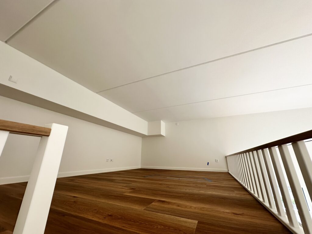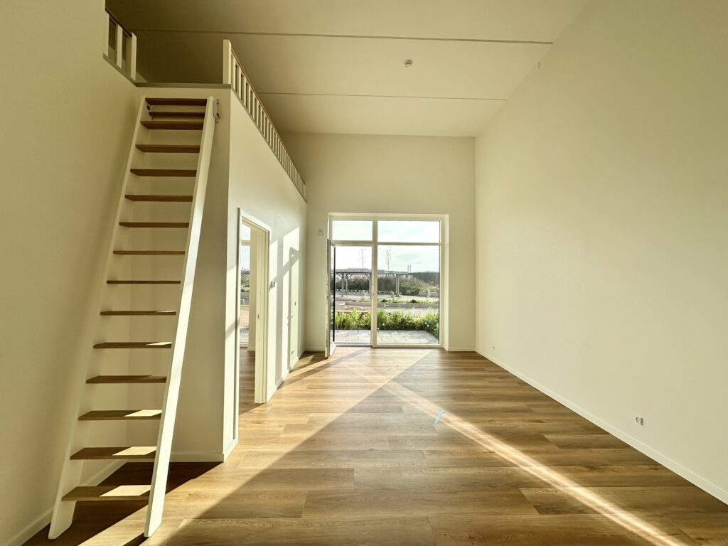 Lejligheden byder på et leverum med plads til stue og spisebord samt HTH køkken med alt i hårde hvidevarer på endevæggen. Fra leverummet er der adgang til et badeværelse med kombineret vaske- og tørremaskine samt adgang til værelset og hemsen. Der er garderobeskab på værelset og stige til hemsen som kan bruges som soveværelse, opbevaring eller noget helt tredje. Ved indgangen til lejligheden har du din egen sydvendte terrasse.