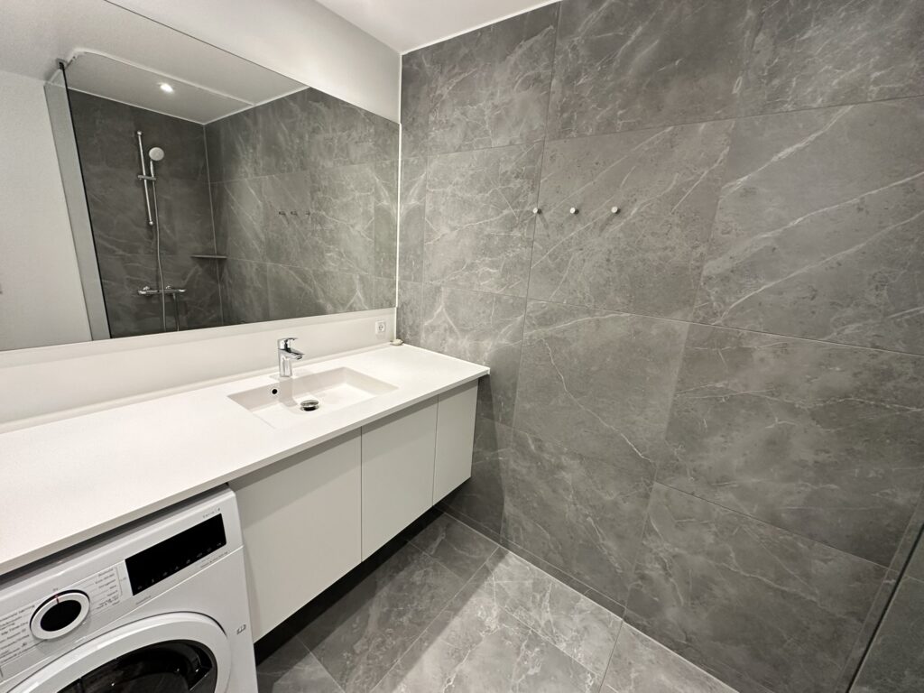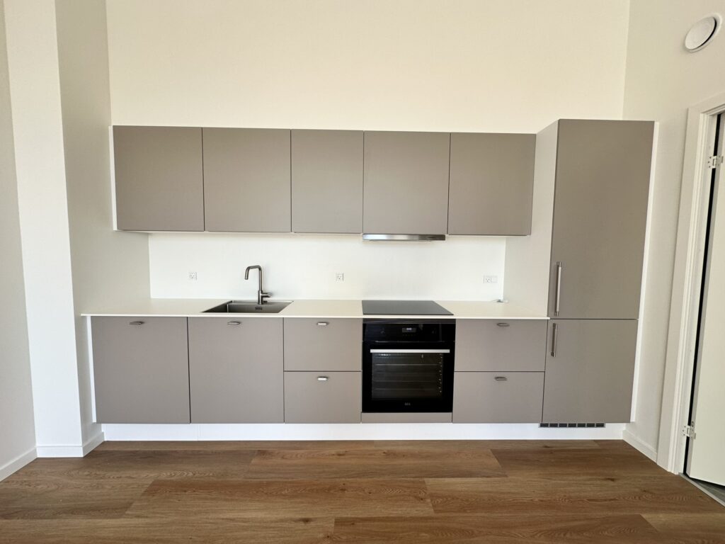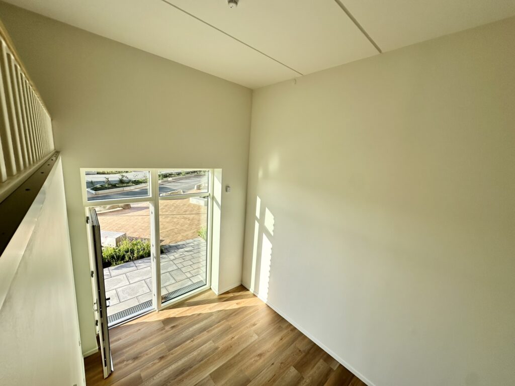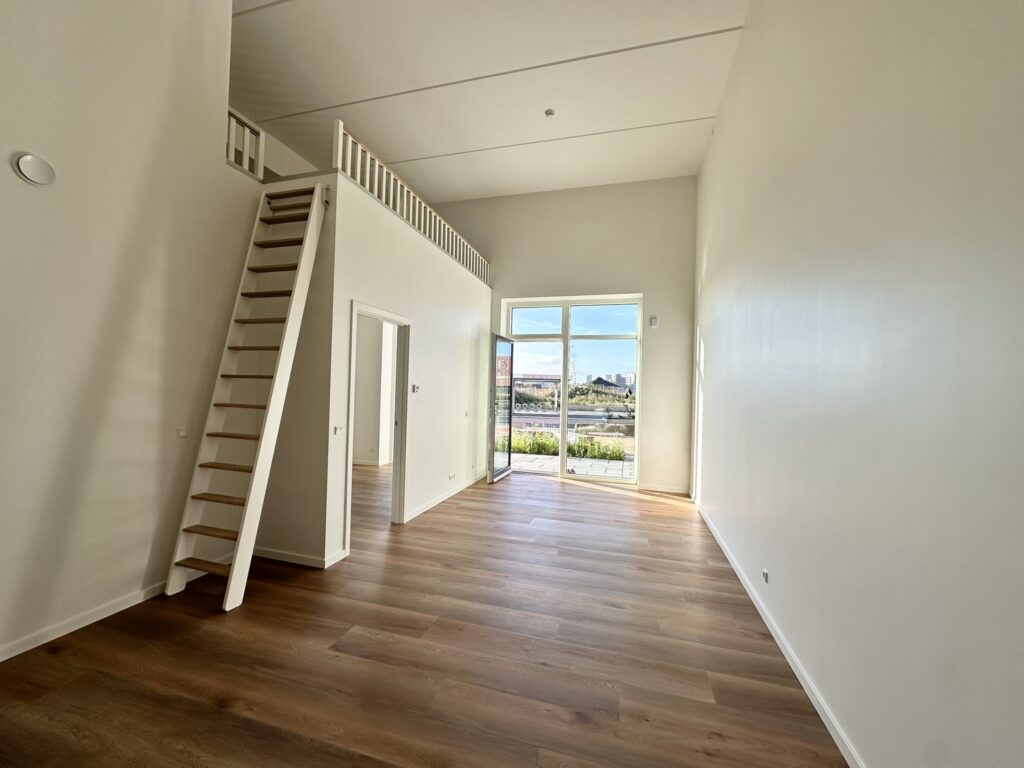 Lejligheden byder på et leverum med plads til stue og spisebord samt HTH køkken med alt i hårde hvidevarer på endevæggen. Fra leverummet er der adgang til et badeværelse med kombineret vaske- og tørremaskine samt adgang til værelset og hemsen. Der er garderobeskab på værelset og stige til hemsen som kan bruges som soveværelse, opbevaring eller noget helt tredje. Ved indgangen til lejligheden har du din egen sydvendte terrasse.