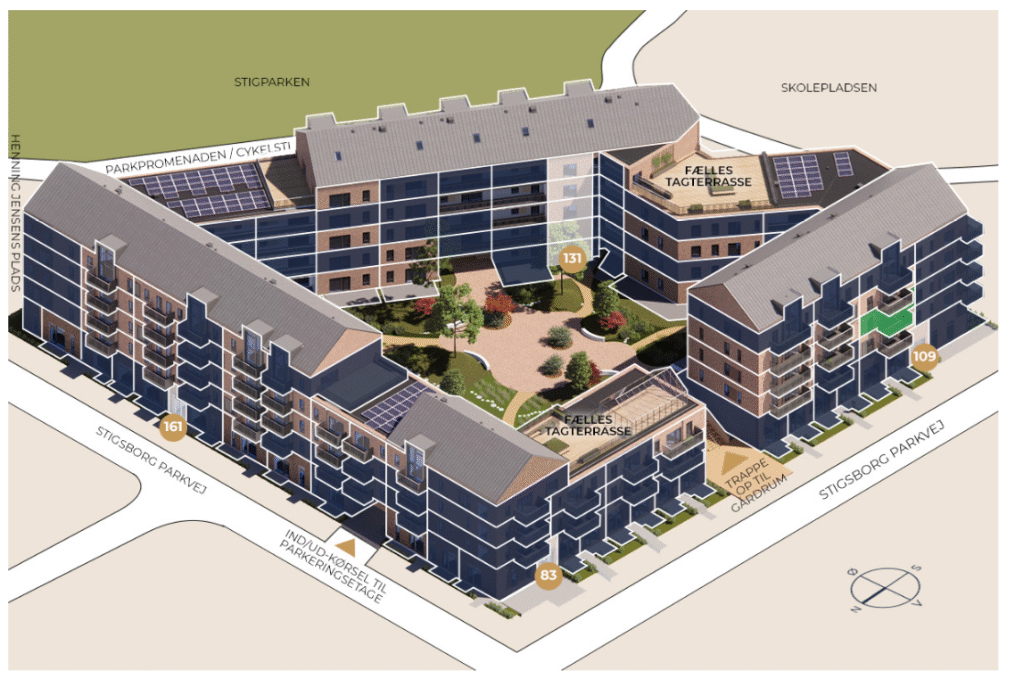 Velkommen til et luksuriøst boligområde på Stigsborg – hvor moderne design møder naturens ro.