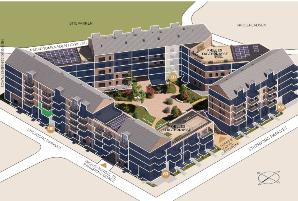 Velkommen til et luksuriøst boligområde på Stigsborg – hvor moderne design møder naturens ro.