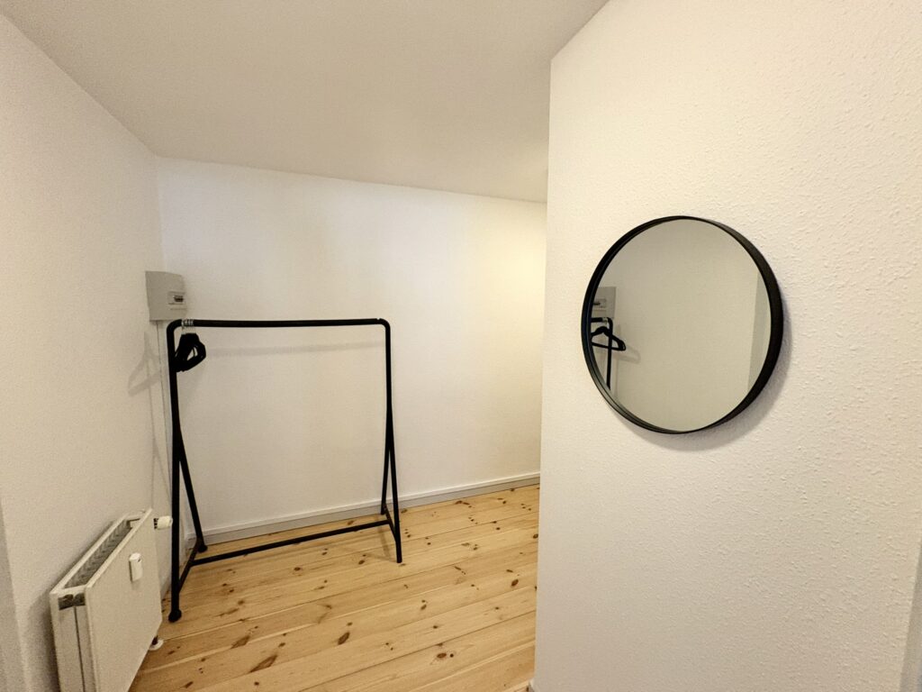 From the kitchen, a staircase leads to the upper floor, where you will find a large living room as well as a spacious bedroom with wardrobe space.