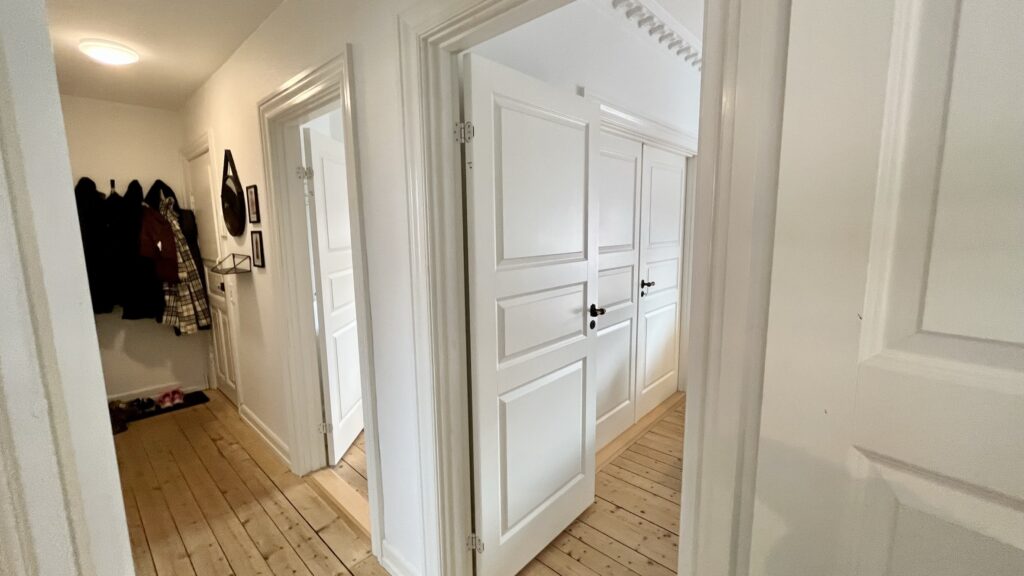 Billederne er ikke fra denne lejlighed men fra en tilsvarende i ejendommen med tilsvarende materialer og indretning.