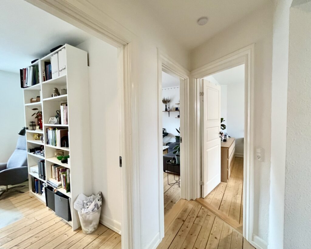 Lejligheden indeholder en lys entré/fordelingsgang, hvorfra der er adgang til alle lejlighedens rum. Flot badeværelse med god bruseniche, lyse klinker med gulvvarme. Lækkert moderne køkken med alt i hårde hvidevarer og mulighed for indretning af lille spiseplads. Stort soveværelse mod gården. Flotte stuer én suite opdelt af dobbeltdøre – dette giver muligheden for at indrettes sig med opholds- og spisestue eller én stue og kontor/værelse.