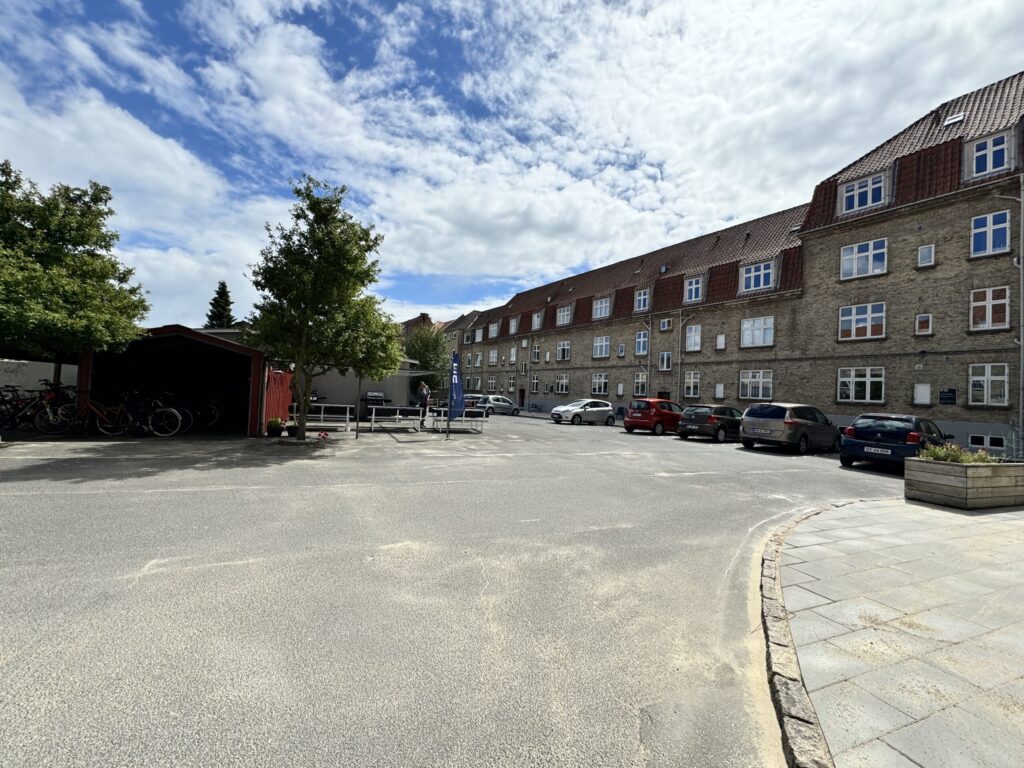 Der medfølger en parkeringslicens til lejligheden, og der er mulighed for at leje en garage i gården.