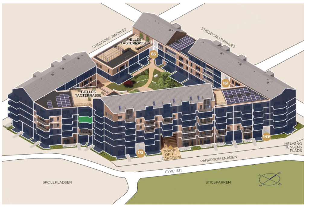 Velkommen til et luksuriøst boligområde på Stigsborg – hvor moderne design møder naturens ro.