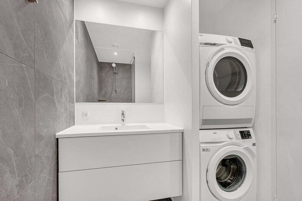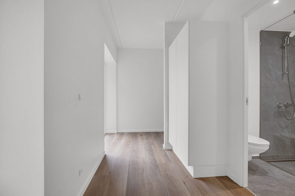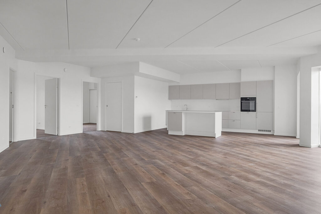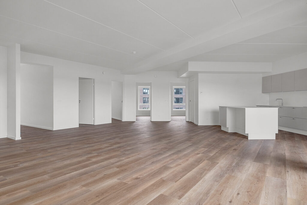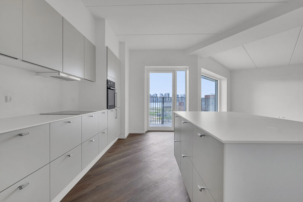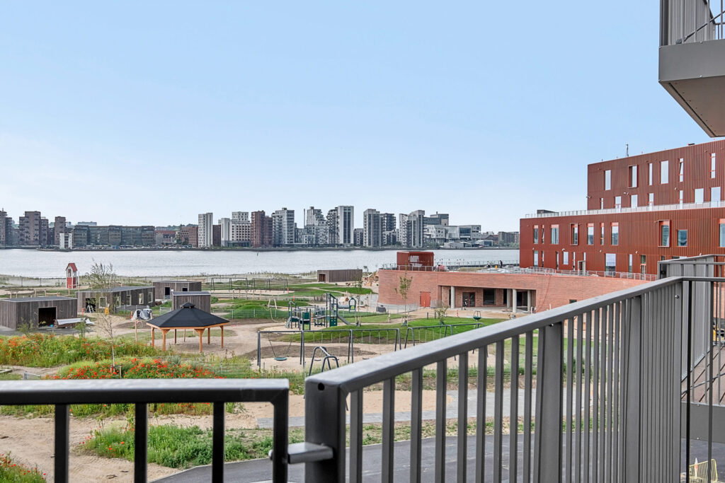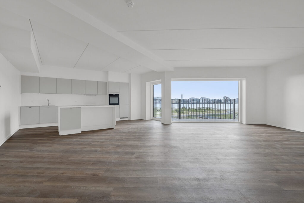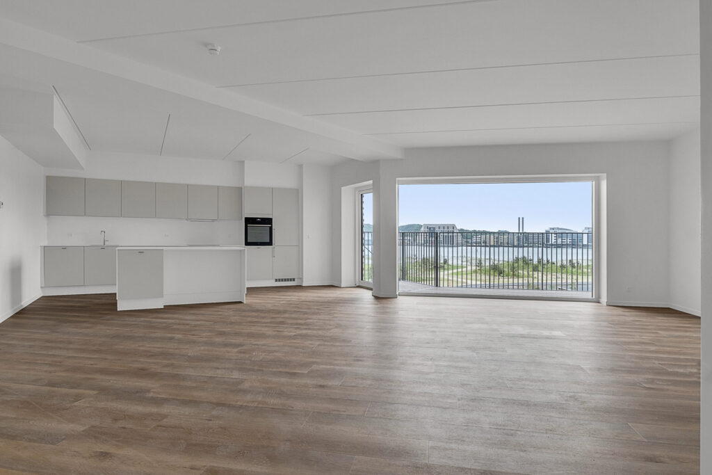 Denne unikke 5-værelses lejlighed har fantastisk udsigt over park og fjord. I lejligheden er der en god entré med faste skabe til overtøj og sko. Der er ligeledes adgang til 1 af lejlighedens 2 badeværelse fra entréen. Derefter bliver man draget ind i det store leverum med de store vinduespartier, som giver et helt fantastisk lysindfald og view ud over fjorden. I leverummet er der et eksklusivt HTH køkken med køkkenø og alt i hårde hvidevarer samt Quooker.